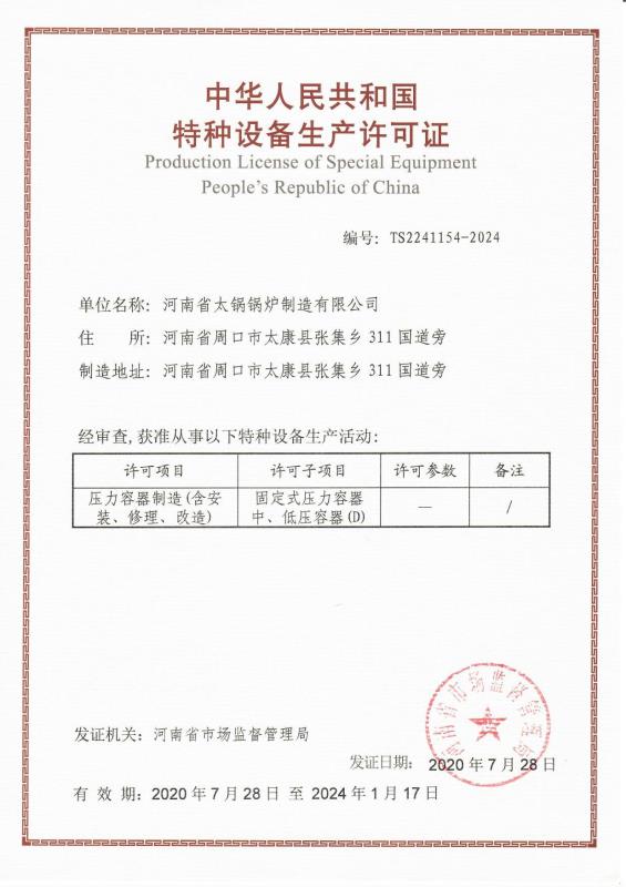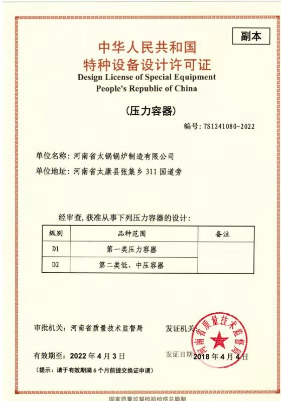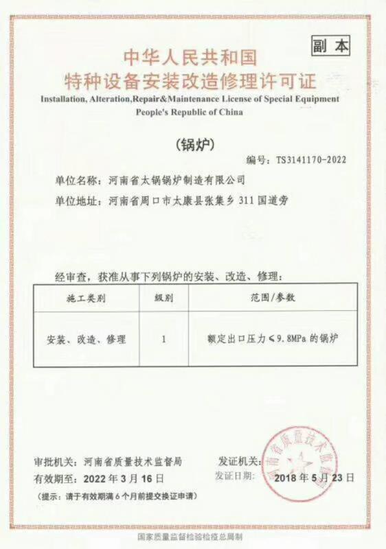 河南省太鍋鍋爐制造有限公司(原河南省太康鍋爐廠始建于1976年)始建于70年代初,經(jīng)40多年的艱辛探索,靠科技興業(yè),走科學(xué)管理之路,現(xiàn)已發(fā)展成為承接制造、安裝、設(shè)計(jì)大、中型供熱系統(tǒng),生產(chǎn):SZS燃油燃?xì)庹羝仩t、燃煤蒸汽鍋爐、燃油鍋爐、燃?xì)忮仩t、電加熱鍋爐、生物質(zhì)鍋爐、茶水鍋爐、有機(jī)熱載體鍋爐、熱風(fēng)鍋爐,蒸壓釜、燃油蒸汽鍋爐、燃?xì)庹羝仩t、燃油熱水鍋爐、燃?xì)鉄崴仩t并承擔(dān)安裝120噸熱水鍋爐、蒸汽鍋爐,生物質(zhì)鍋爐,加工制造一、二類蒸壓釜、壓力容器,化工機(jī)械的省一級(jí)**企業(yè)。